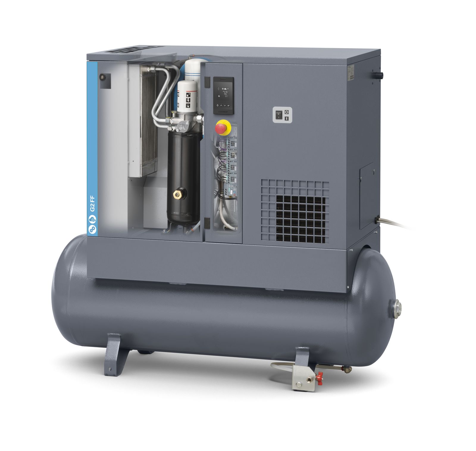 La serie G de última generación cuenta con un potente elemento de tornillo rotativo de Atlas Copco, además de un avanzado controlador electrónico para hacer frente a las aplicaciones más exigentes. Este compresor es la solución de aire preferida en pequeñas y medianas empresas. Cumplen con todos los requisitos de un compresor, es Silencioso, Potente, Eficiente y fiable.