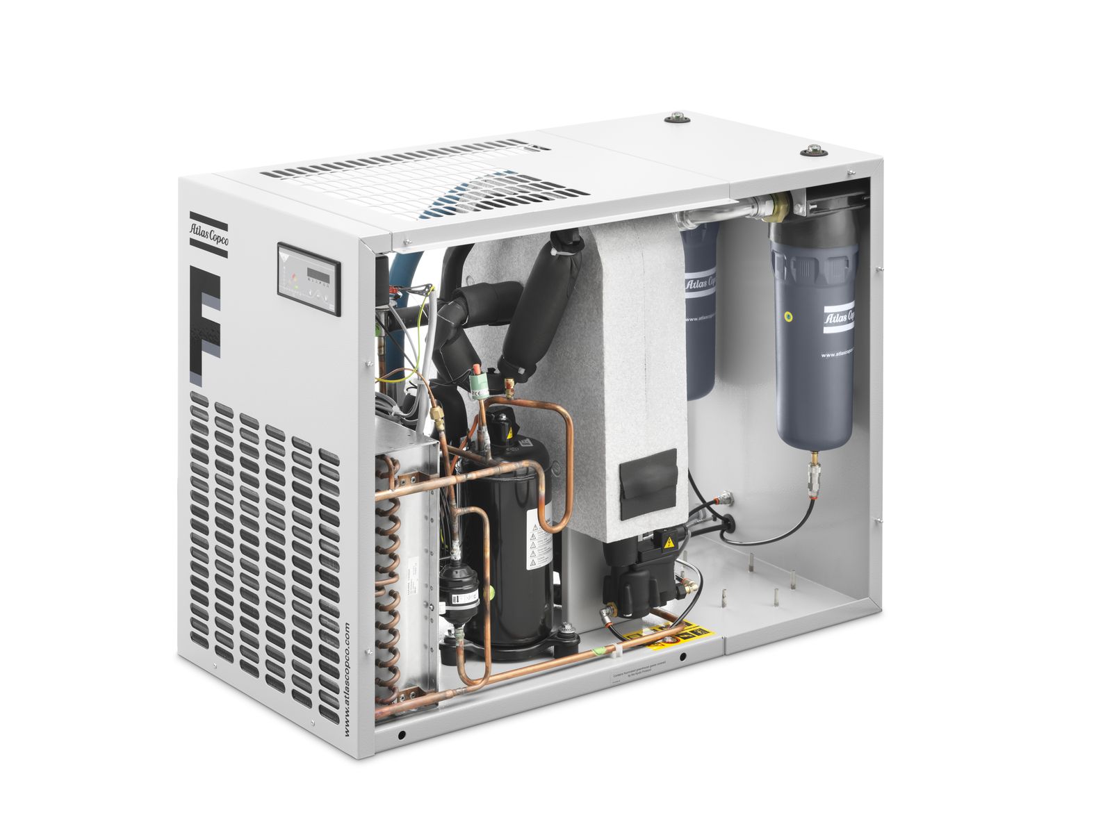 Punto de rocío a presión +3 °C, purgador electrónico sin pérdida, controlador con pantalla de punto de rocío, opción de ahorro de energía, funcionamiento silencioso, pureza clase 4 (ISO 8573-1:2010). Máxima eficiencia.
